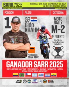 - Guido Krahn (Categoría M1): El piloto chaqueño y multicampeón nacional es la punta de lanza del equipo. Su experiencia en terrenos áridos y su velocidad lo posicionan como uno de los favoritos en la categoría principal.