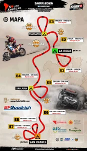 La edición 2026 del SARR no dará tregua a los competidores. Con un recorrido total de 2.800 km, la carrera está diseñada para emular las condiciones extremas del Rally Dakar.